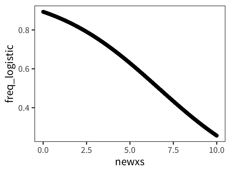 So we can still use the concepts from linear regression where we have an intercept \(\beta_0\) and slope \(\beta_1\) to figure out the probability of a \(y\) being 1 or 0 given a certain \(x\) and then submit that to the bernoulli distribution.