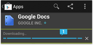 In this example, an activity bar (in Holo Dark) appears when a user first requests a download. There's an unknown period of time when the download has not yet started. As soon as the download starts, this activity bar transforms into a progress bar.