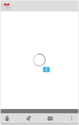In this example, an activity circle (in Holo Light) is used in the Gmail application when a message is being loaded because it's not possible to determine how long it will take to download the email.