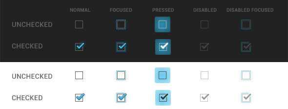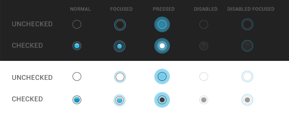 For information about how to create these different switches, see the Checkboxes, Radio Buttons, or Toggle Buttons API guides.