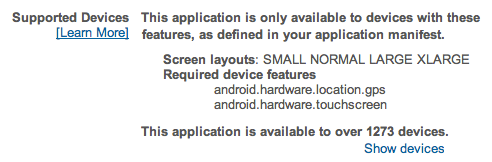 For pinpoint control over distribution, Google Play lets you see all of the devices your app is available to based on its dependencies (if any). From the Google Play Developer Console, you can list the supported devices and even exclude specific devices if needed.