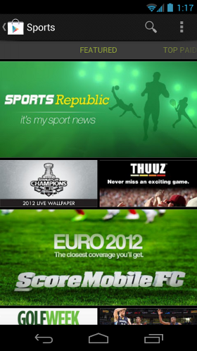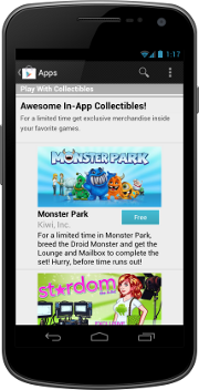 Google Play is a central part of the Android experience. New users personalize their devices with apps, games, and other Google Play content. Existing users return regularly to see what's trending and new. Downloading new apps is extremely convenient and fast— Google Play pushes apps to the user's devices instantly, over the air. No cable or sync is ever needed.