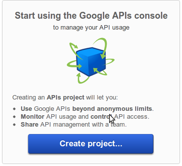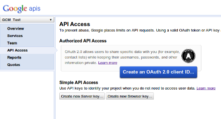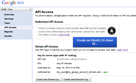 1. In the main Google APIs Console page, select API Access. You will see a screen that resembles the following: