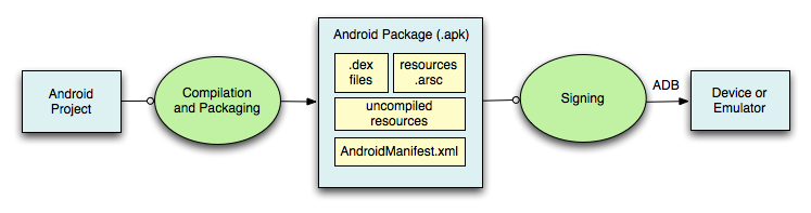 .dexfiles so that they can be packaged into the final.apkfile. - All non-compiled resources (such as images), compiled resources, and the .dex files are