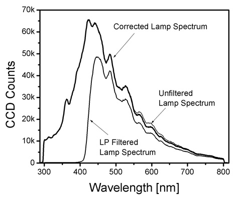 adjusted long pass (LP) filtered lamp spectra. This effectively