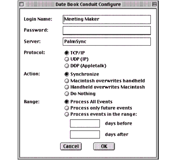 - Do Nothing--no data is exchanged between Meeting Maker and the Palm organizer.
