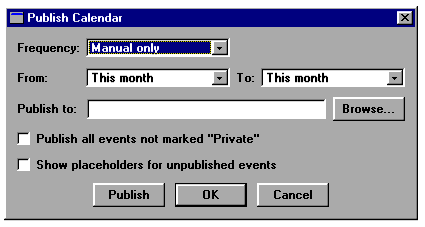 - From the File menu, select Publish. The Publish Calendar dialog box displays: