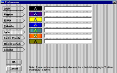 Color monitor users can set seven custom labels for color-coding daily and monthly calendar events. For example, you can label staff meetings one color, and personal activities and other events other colors.