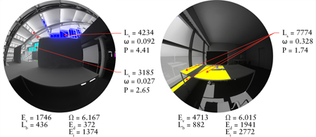 Fig 2: Point in Time Glare analysis based on Radiance and evalglare using DIVA-forRhino (more>>).