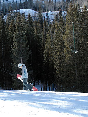 It's winter again and if I don't get out I will go mad. Or I am mad. Or my world is mad and I'm the only sane one in it (I know people who really believe this - the crusaders). Thank the Lord for mountains. I should have taken a road trip. The closest I'll get is taking I80 through a low hanging cloud. I decided to try my hand at the Salt Flats since there wasn't much else to do out there by myself. Unfortunately I didn't get there until after dark so I couldn't see much. I parked the car and walked off the service road in the dark. Then I was all wet. Salt Lake water is yuck and apparently there's quite a bit of it in December. You're only supposed to do this in summer. Live and learn. When in Rome (with wet shoes). Luck wasn't in great supply at this point in time and so why was it such a good idea to go to a casino? But the rules are simple to follow. You have what you have in front of you and no amount of whining, complaining, scheming or lobbying changes the fact that if you don't like your lot, it isn't the house's fault or that of the person sitting next to you watchful over his pile of chips. Ok, too many work references, this is vacation. I do like casinos. The snow base was low. Rocks everywhere. Snowmaking at Alta! Something is definitely wrong in the universe. The abuse continues. Sometimes you get yourself in situations where you have to pop your skis and jump. Or, in my case, slide. Ouch. You take the bumps and bruises because no one pushed you there but you. Because you thought there was a percentage in it. And you lost. Simple rules they don't teach you at MIT. Personally I don't mind it. It makes the good runs all that much more sweet. There I go again. I'm restless on the inside. That's what disturbs me. I'm too good at protecting myself from outside attacks. Though I'd pay good money to work with Terry Tate. The universe continues its detour. I sit down on the quad when the lift stops. I sat there. And sat. And sat. Power outage. Brighton has a generator that can operate one lift at a time to get people off. The power would not be restored. I sat. Too patient sometimes. Ironic. After an hour or so this lift wasn't going to go anywehere. I realize it's just been too long and get tired of waiting. A small boat load of people trapped in the cold all the way to the summit. I stand up and ski away. Story of my life. On the way home I see a pickup truck wrapped around a telephone pole. I now know where the power comes from. How fragile. Decisions, decisions, decisions. I don't know what I want. I know what I don't want. Sometimes a problem. All I can do is to limit the time I wait for power unrestored and take my chances on the rocks. |