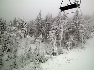 The next day it was time to return home, the long way. If I only knew which way it was it would have been helpful to plot a direct route. Although that would violate the premise of a road trip I didn't know this would qualify as one at the time. I wanted to head toward Jay so that meant north. The Taconic goes north. I've never driven the Taconic all the way up. I highly recommend it. Stopped off at Franklin's to use the head. I didn't make it all the way up I87 and as it turns out this would require that I modify my ski plans (although plan is a strong word to use here). It's just too depressing as dusk begins to set in (yes, I'm wasting a lot of time) to arrive at Plattsburgh. There was a sign that said Champlain bridge. I really like the one on US2 so I thought I would give this one a try. The sign ommitted the mileage. I got tired of driving on US7 in Burlington. Time to spend the night. No cell or pager service. Just food and sleep. The funny part was that the folks at the next table were discussing this new skateboard snowboard thing. I was an informed eavesdropper. I wound up at Sugarbush since it was a lot closer to where I was and I hadn't been there before. A nice-sized mountain that gave me plenty to do for the day.