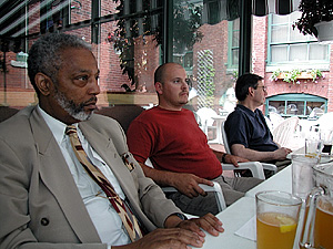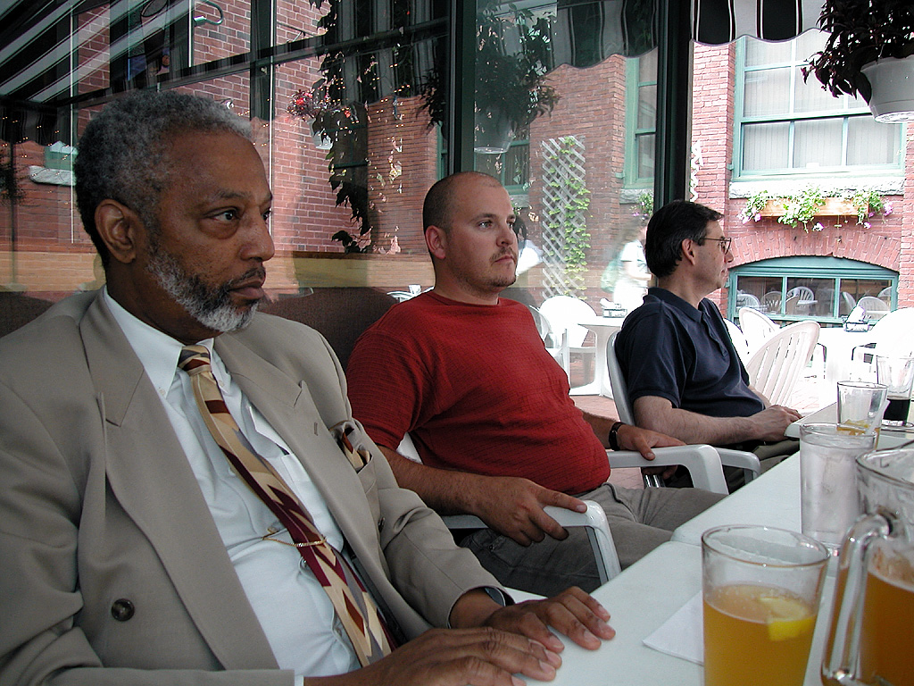 IT groups have many meetings in the name of communication and cross-functional... no wonder so little can get done sometimes. Perhaps so many people get hired in the craze to keep up with technology no one knows what they are really supposed to be doing. Anyway, this is my kind of meeting although it doesn't avoid the surprised look on their faces (they're not looking at me). ![]() MIT's Information Systems is really run from one of several conferences rooms off campus. There's conference room left, conference room right and here at cbc -- a most excellent summertime venue. In one of the great synergies (Hefeweisen summer special) of the facility we're joined by the OKI group and the telecommunications department, putting together most of the rebel-rousers from the campus cabling plant up through application development. Nothing but trouble comes out of this. |