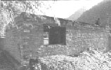 Photograph of a well-built house of stone and cement. A few people commented that this house was well built. On occasions the window caused confusion, as did the building materials in the foreground. The strong shades and the cluttered foreground and background make this photograph unsuitable for educational materials. Reproduction usually makes the problems worse because the shades and contrast will appear even stronger. Cutout version of the photograph. The removal of the background emphasizes the strange angle of this photograph and made it look like a coffin to one respondent. A couple of people did not recognize this as a house. One described it as a plan of a house compound. The window and the piles of material in the foreground caused confusion. In this drawing the content of the photograph was reproduced more or less exactly with little selection of what was or was not significant. The stones were not drawn clearly but in a matter indicating a general texture. Some commented that the house was poorly built, most probably because of the appearance of the stonework. While in the photograph the stonework is no more than a texture of light and shade, it still gives the impression of a well-built house. In a drawing, a line is expected to be there for a purpose. Stonework represented by broken or incomplete lines was read as poor stonework. Similarly, both the heap of sand and the crying children, because they are carefully drawn in, took on an even greater significance than in the photographs. Respondents commented: if someone has gone to all the trouble of drawing it then it must mean something. Educational materials