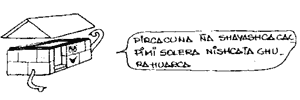 ![]() A drawing suitable for a Quechua-reading person who understands cartoon conventions and hard to read so-called designer script, but does not understand Spanish. Thus it is designed for a person who does not as yet exist.