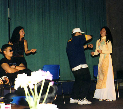 THANG: ummm.......(music comes on, Thang starts dancing...everyone