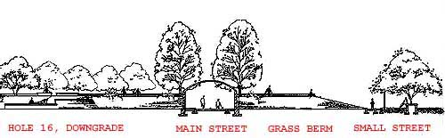 Earth Berms represent buildings off the street....Planting of avenue trees along the main street, and smaller trees along the secondary street are shown above.