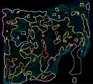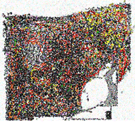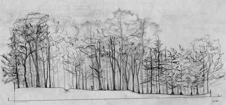 Urban forest with grid pattern. Five sections of the forest each a separate tree farm planted at varying distances. Studies of forest texture: