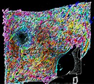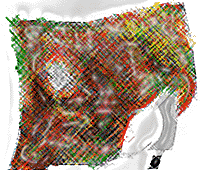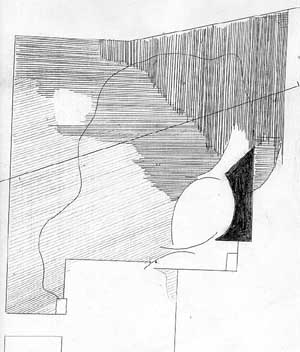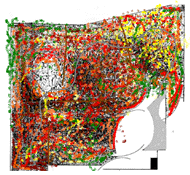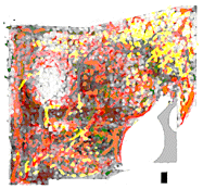 Urban forest with grid pattern. Five sections of the forest each a separate tree farm planted at varying distances. Studies of forest texture: