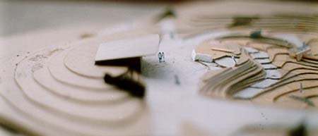 The main idea for this building is that it is considered part of the topography. Because it is being held by the contours, its facade is trying to break out of the slope and become part of the open space. From this location you can look out into and across the golf course and into the rest of the park. |