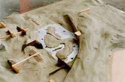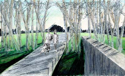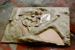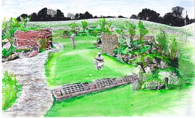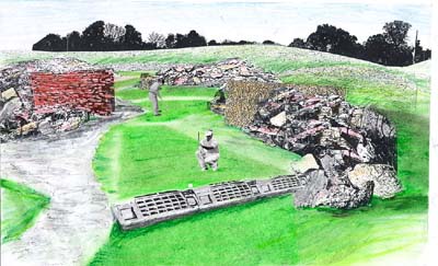 5th Year: The mounds of rubble have almost become completely grown over with vegeatation. A sense of enclosure is formed. Materials are now rusty and crumbling and the process of time on the environment is revealed. |