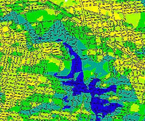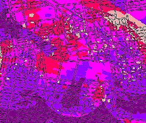 COMPARISON OF ENVIRONMENTAL AND HUMAN FACTORS: Two factor maps which are unique to the creation of my site suitability map are the Environmental Factors map and the Human Factors map. While I was creating the factor maps I noticed certain relationships among the maps. I also noticed that the factor maps I chose could be classified on the basis of whether they are factors relating to human or natural forces. The Environmental Factors map was created by combining aspect, depressions, flooding, and wetlands. I gave particular weight to depressions (5x) and aspect (2x) in order to locate a site that would collect water and have a south-facing slope. My main concern is that the course be located at a low elevation so that it can be used as a water retention basin. The Human Factors map was created by combining commercial areas, crime incidents, public transportation, and lot size. Public transportation was given twice the wieght of the other factors because I wanted to locate a site that would be easily accessible by people outside of the Mill Creek neighborhood. |