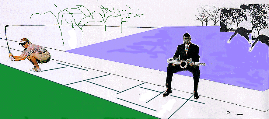 Stages programmed for golf overlap other events, inviting moments of contact, tension, and improvisation. Comedy and drama unfold as these unexpected events occur.