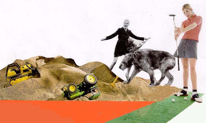 Stages made of sand are used as sand boxes during the day, and as barbecue pits or for camp fires at night.