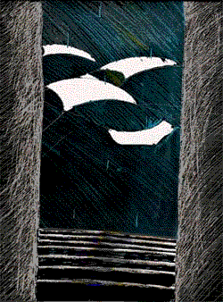 | a moment later my first poem began. What touched it off? I think I know without any wind blowing the sheer weight of a raindrop shining in parasitic luxury on a cordate leaf caused its tip to dip and what looked like a globule of quick silver performed a sudden glissando down the center vein and then having shed its bright load the bright leaf unbent Tip.leaf.dip relief. The instant it took to happen seemed to me not so much a fraction of time as a fissure in it, a missed heartbeat which was refunded at once by a patter of rhymes; I say patter intentionally for when a gust of wind did come,the trees would briskly start to drip all together in as crude an imitation of the stanza I was already muttering resembled the shock of wonder when for a moment heart and leaf had been one. |