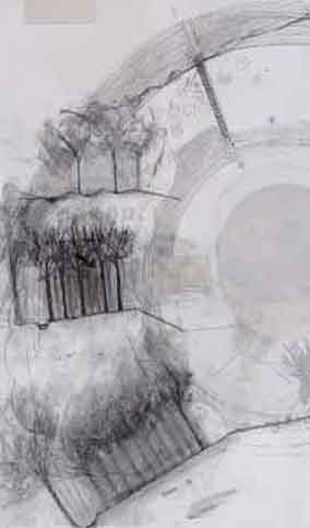 musclewood trunks form screens through which people and the ball must move. The grid of trees