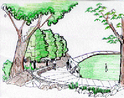 The course for the miniature golf course is entwined with the pedestrian pathway, so that neither interfere with each other and people can play as well as be spectators.