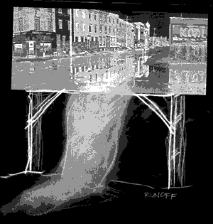 after water falls it collects in puddles pipes, rivers; wherever it may go