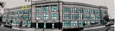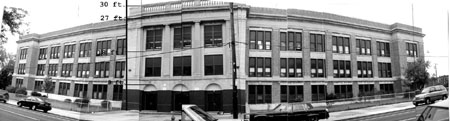 The Mill Creek sewer can hold a large amount of water. But every two to five years there is an especially large storm. The sewer is not large enough to hold the rainwater because a lot of rain falls in a short period of time. In fact, the amount of overflow-of water that does not fit in the sewer-is enough to fill Sulzberger Middle School to the height of 25'. What volume of water can Sulzberger Middle School hold? 1. What is the length of the front of Sulzberger Middle School?_________ 2. What is the length of the side of Sulzberger Middle School?____________ ![]() 3. The formula for volume is the length of the front X the length of the side X the height of the water: