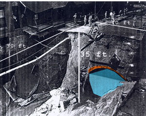 Water had eroded the earth around the sewer and created a big hole beneath the pavement.