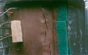 Pairs of students at Sulzberger Middle School test what would happen if a wetland were built in Mill Creek. 1. A simple topographic model is constructed with clay.