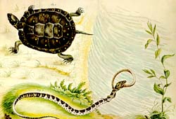 | John Bartram owned a farm near the Schuylkill and was famous for collecting and making observations about the natural world. William Bartram, his son, was also a noted observor of the natural world and is famous for the drawings he made of plants and wildlife. Many of the plants discovered by John and William Bartram can still be seen at Bartram's garden: their 18th century farm still exists and is open to the public. It even has a wetland! | ![]() |