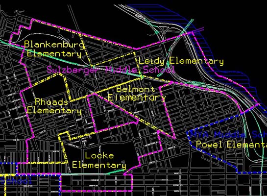 This map contains the boundaries and names of the elementary, middle and high school catchment boundaries as designated by the Philadelphia School Board.