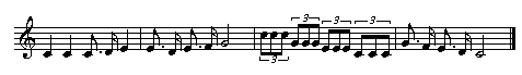X: 1 T:Piece No.1 M:C L:1/4 Q: 140 K:C C C C3/4 D/4 E | E3/4 D/4 E3/4 F/4 G2 |