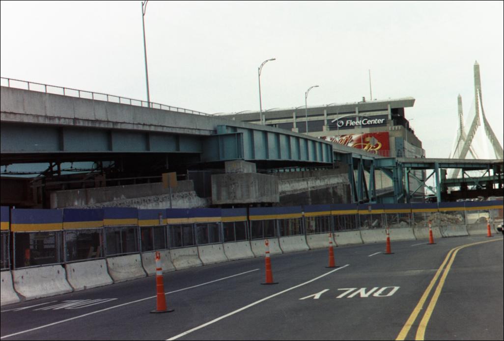 The last off-ramp from the elevated Central Artery, to Haymarket Square. This ramp was actually built in coordination with the T, which is still using it as a temporary incline for the Green Line to get to North Station.
