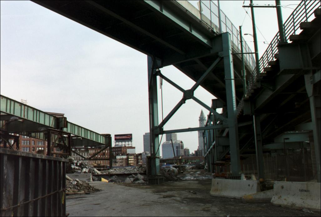 On the left, another block of elevated highway; above us, the ramp to Haymarket; to the right, the Green Line.