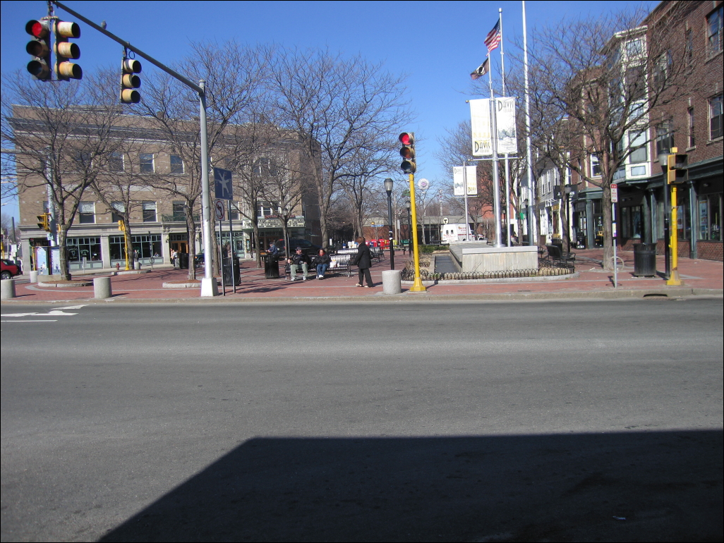 Looking over the square proper, from by the College Ave entrance to the T stop.