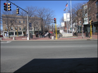 Looking over the square proper, from by the College Ave entrance to the T stop.