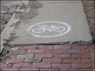 Since Davis Square is a "central business district", bikes aren't allowed on the sidewalk.