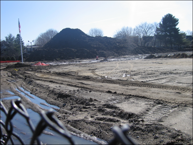They're doing unspecified work on Russell Field. This apparently involves a big pile of dirt. Maybe they're building a freeway...