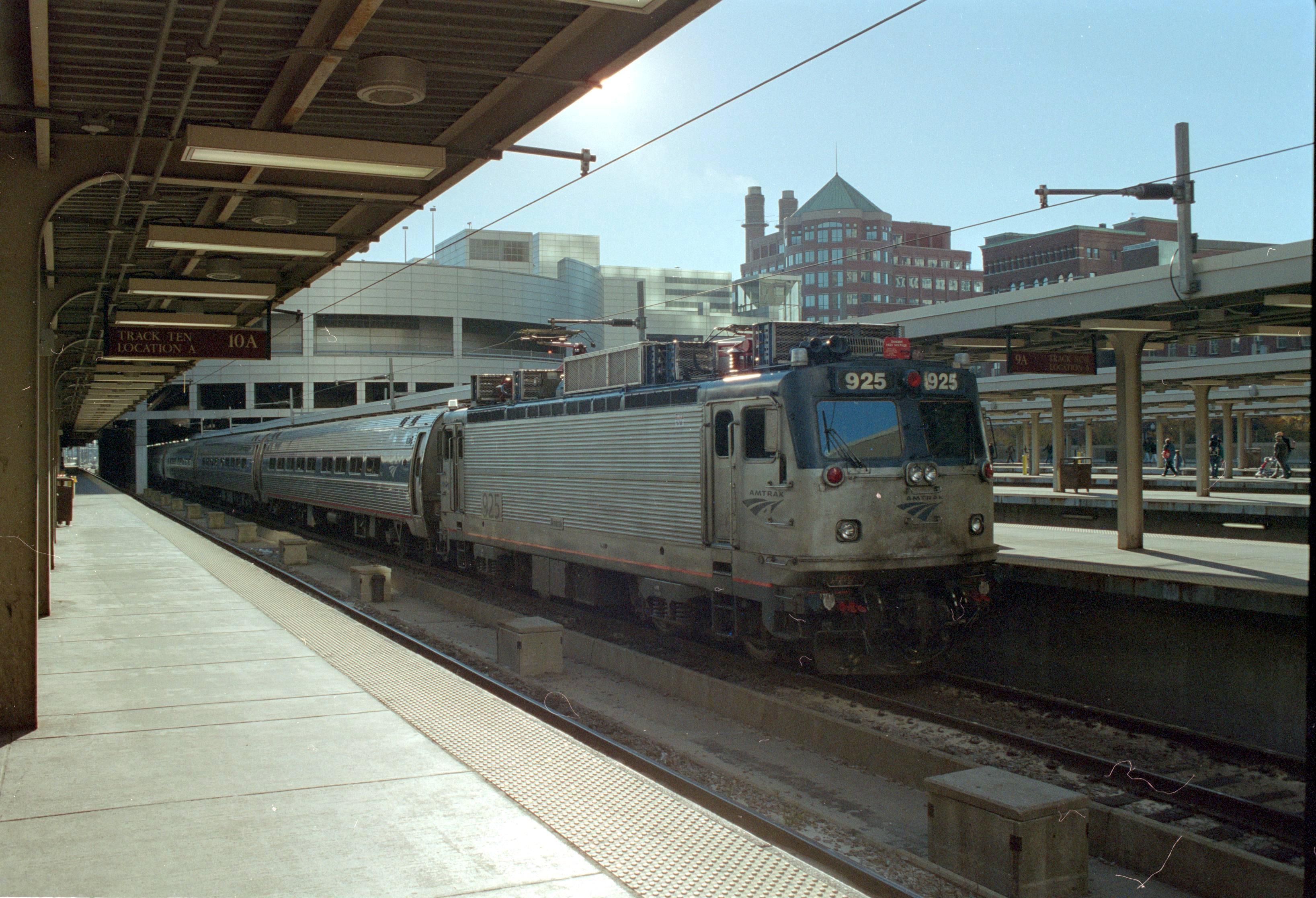 Amtrak AEM-7AC 925 sits at South Station.
