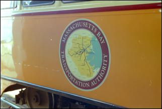 A retro MBTA logo graces the side of PCC #3087. This logo only appears on the Mattapan PCCs; it imitates the old Boston MTA logo showing which communities were served.