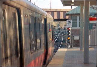 Description : Having made its last stop at Ashmont, an outbound Red Line train prepares to turn around using the crossover track. "Last stop. Thank you for riding the T. Don't forget your belongings."