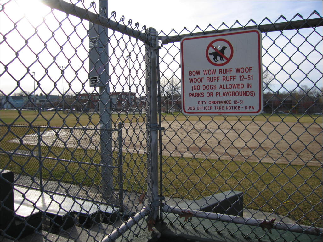 A sign explains Somerville's dog ordinance in both dog and human language.