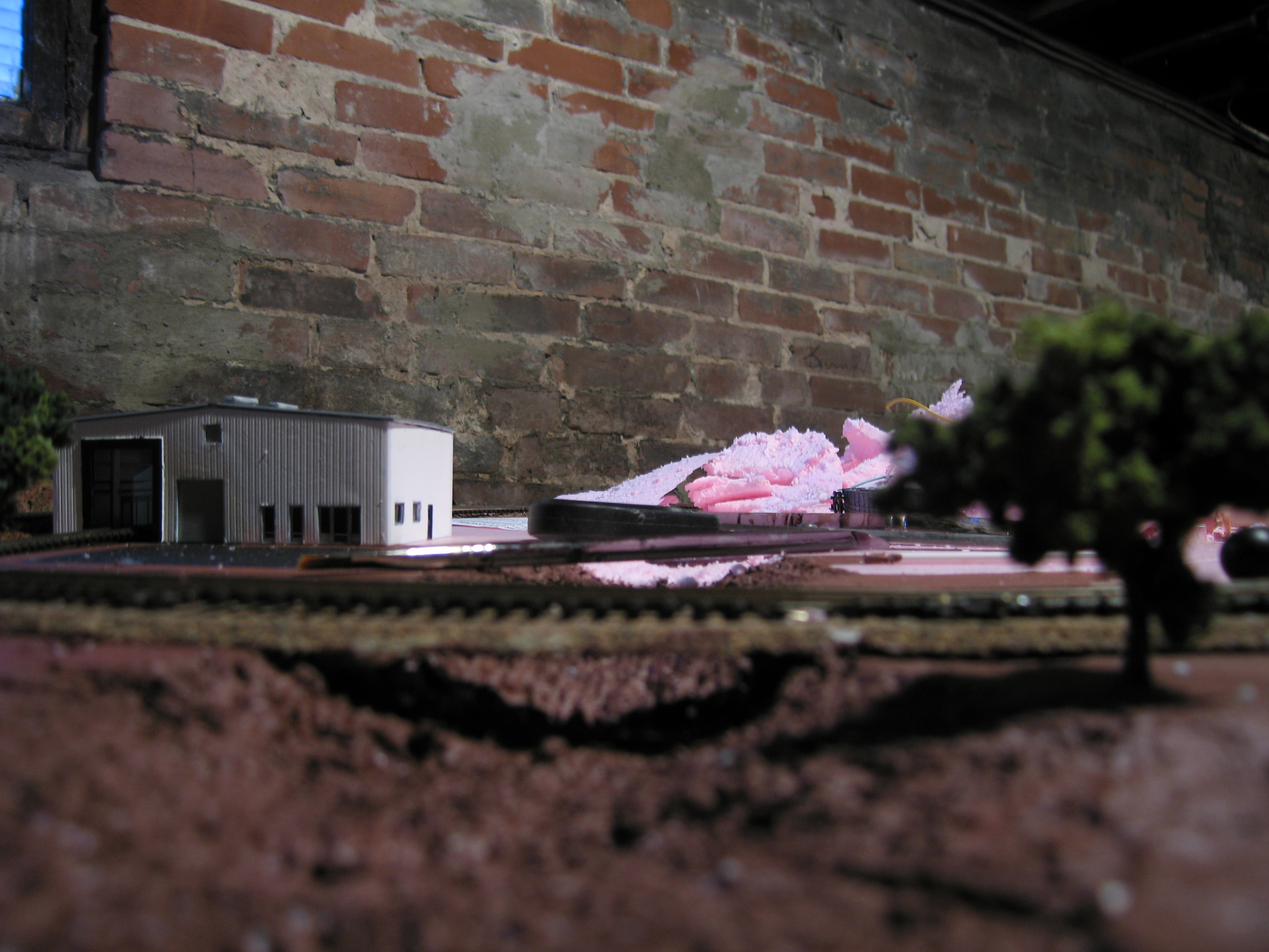 Downstream of the pond, water will eventually drain out of a creek headed towards the front left of the layout.