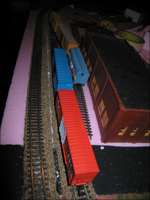 A car is removed from the middle of the train.