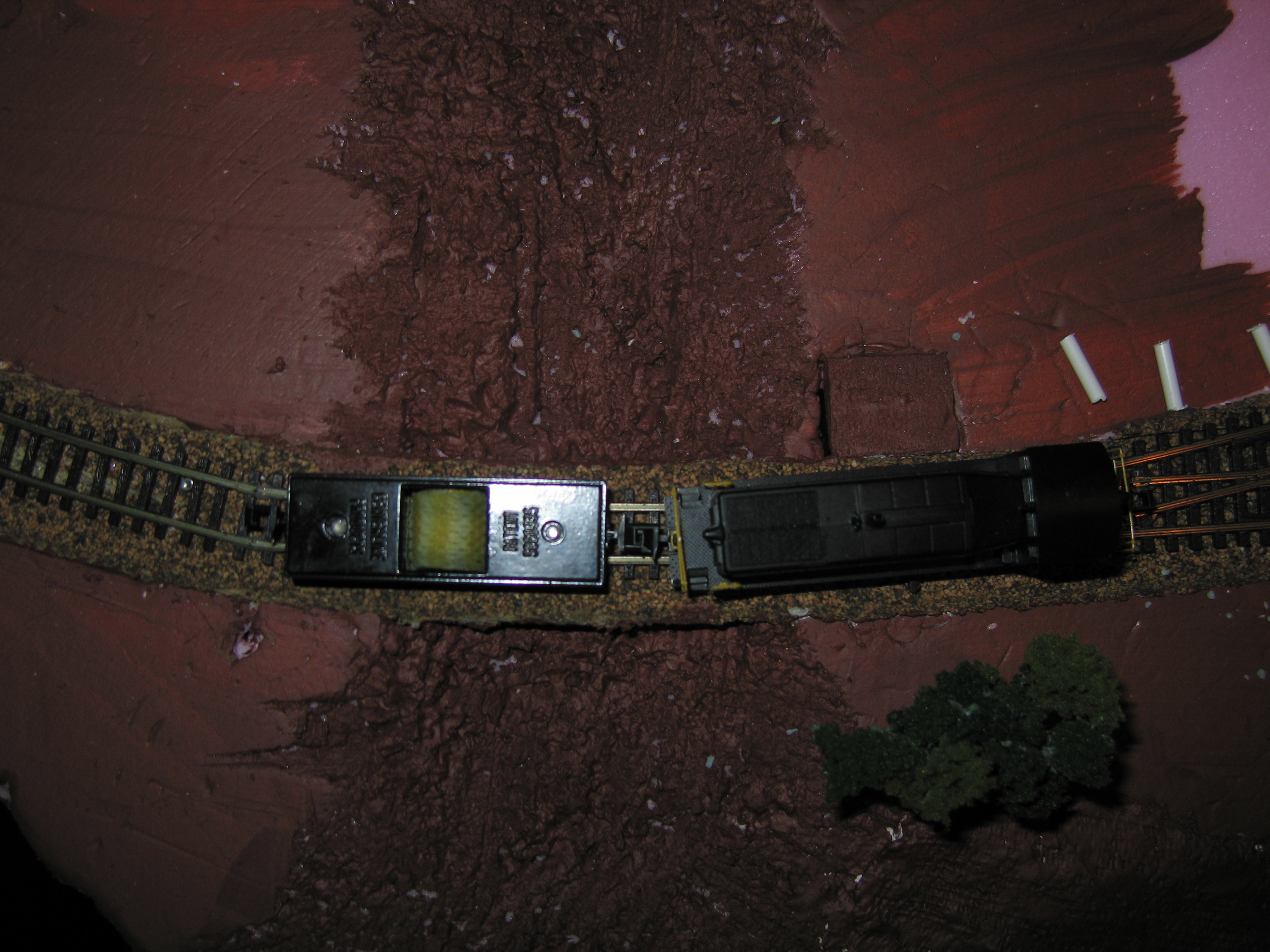 The engine pushes the track-cleaning car around.